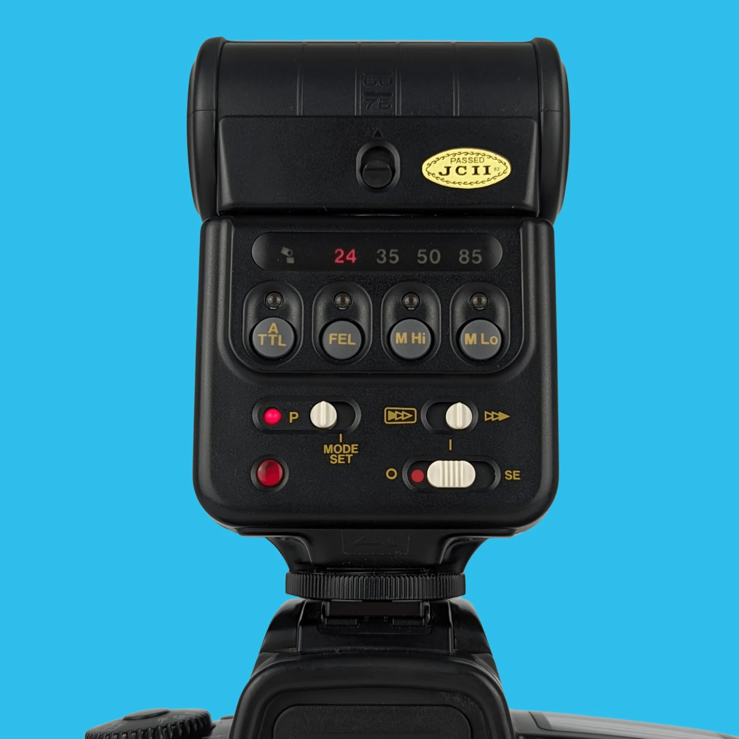 This Canon 300TL external flash unit will work on any 35mm film camera that has a hot shoe attachment. It is worth checking your user manual on how to use the flash, but the standard way is to pop it on the hot shoe attachment, wait for it to charge (you’ll hear a little whine whilst its powering up), set your camera to flash mode and when you shoot, the flash flashes!