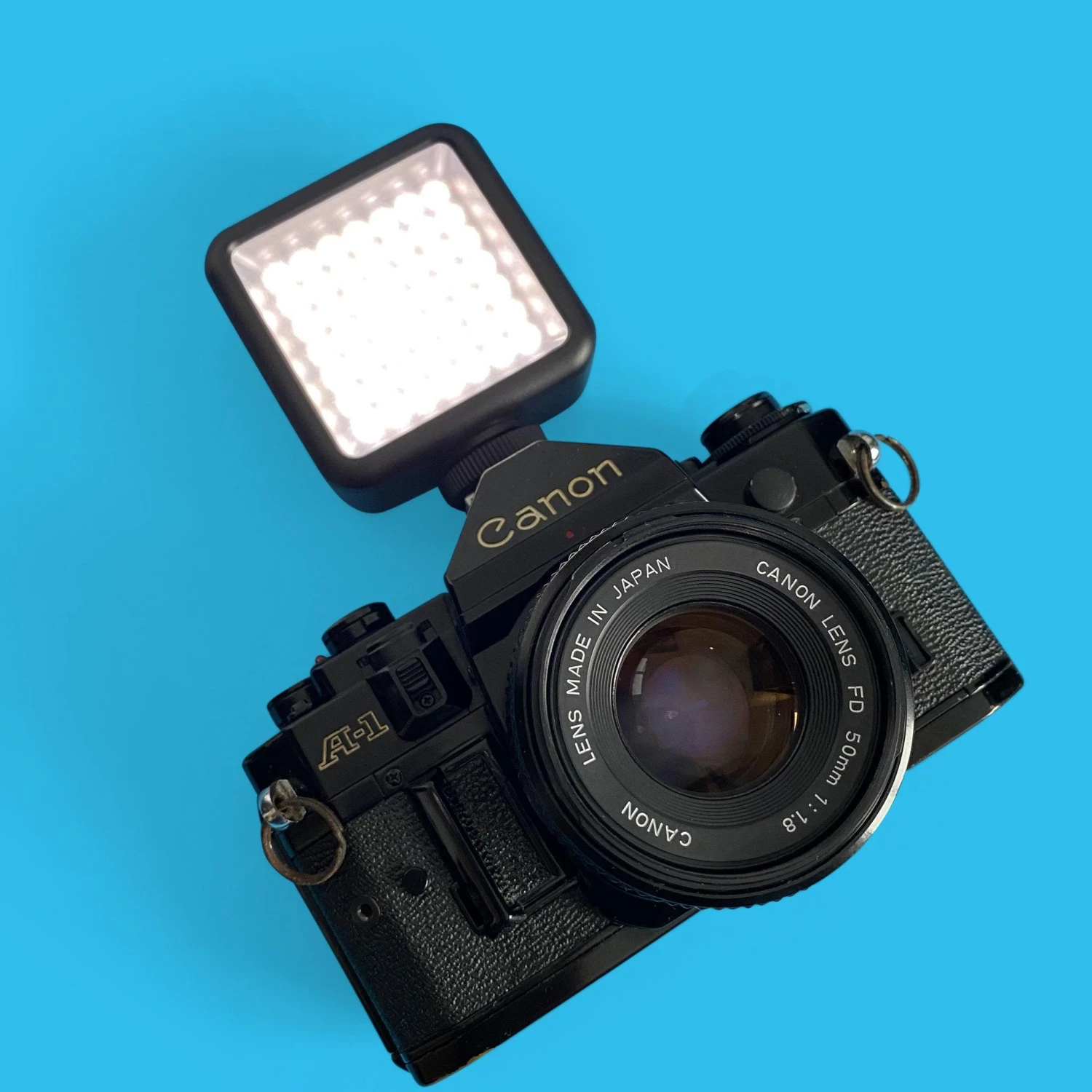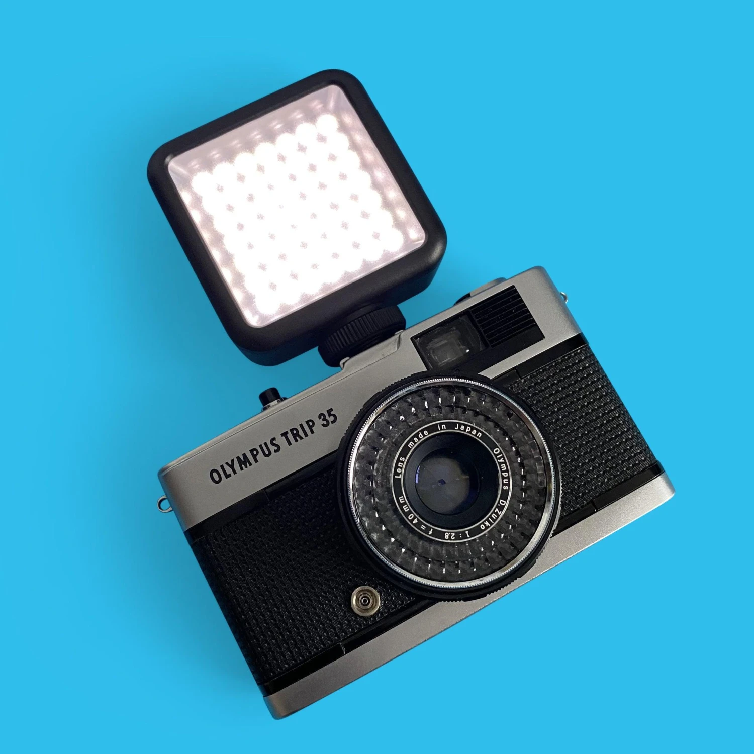 This external LED light unit will work on any 35mm film camera that has a hot shoe attachment. It is worth checking your user manual on how to use the flash, but the standard way is to pop it on the hot shoe attachment.